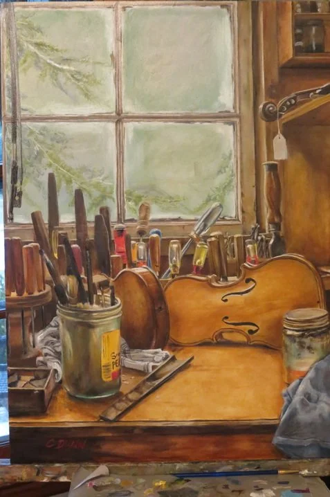 The Fiddle Maker’s Workbench Nov 3 Written By Cristy Dunn Another in the Maker series. Loving these long, cozy winter days at the easel. Cristy Dunn