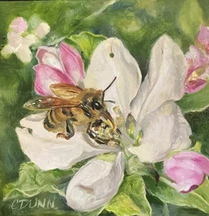 You don't have to go back very far to find newcomers that are now mistaken for original inhabitants. That old apple tree in the garden is one of them. Apples are not native to North America. They came here the same way my ancestors did-- on the deck of an English sailing ship. A couple of hundred years later, you hear people say, "As American as apple pie," because the origin of apples has mostly been forgotten. The honeybees buzzing around the apple blossoms are also strangers in a strange land. They, too, came over from Europe with the colonists, because they were more useful than the native pollinators, the wasps and yellow jackets, whose products were inferior to the abundant honey available from apis mellifera.